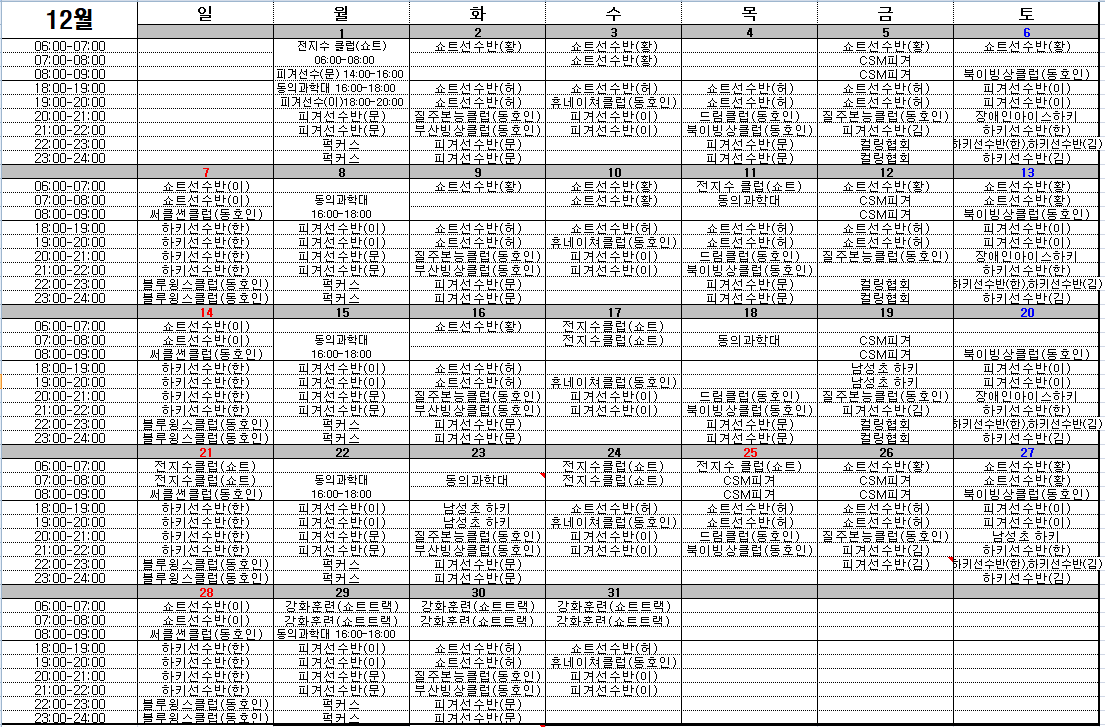 *부산실내빙상장 12월 대관일정입니다. 대관표를 참고하여 추가 대관신청을 원하실경우 051-337-4087 전화를 주시기 바랍니다.