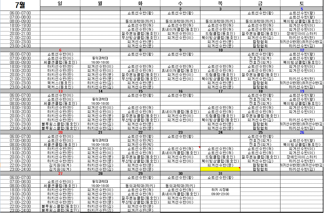 *부산실내빙상장 7월 대관일정입니다. 대관표를 참고하여 추가 대관신청을 원하실경우 051-337-4087 전화를 주시기 바랍니다.