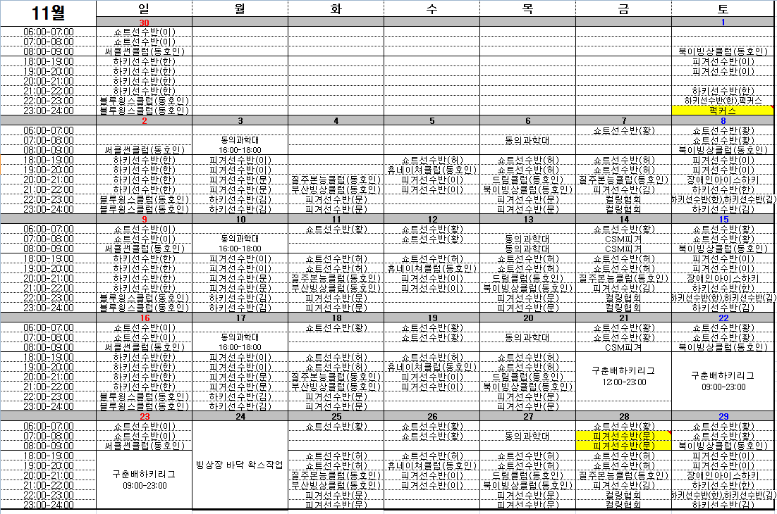 *부산실내빙상장 11월 대관일정입니다. 대관표를 참고하여 추가 대관신청을 원하실경우 051-337-4087 전화를 주시기 바랍니다.